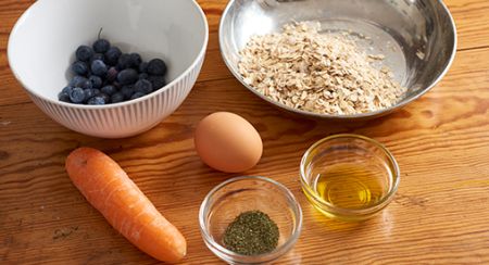 2. In a blender, mix the grated carrot, egg, oats, oil and catnip until well combined.