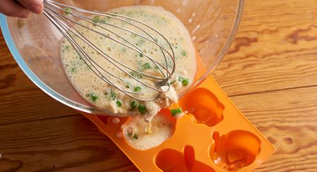 4. Using a small muffin tray (silicone moulds make it easier to remove the finished product), carefully pour the mixture into each section until about three-quarters full. Add an extra Halloween touch by pouring the mixture into a Halloween-shaped silicone tray!
