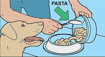 2) Eating carbs to be calm – For dogs with a mild case of noise sensitivity, feeding them a meal high in carbohydrates, such as pasta, actually changes the brain chemistry and may help them relax. If you know that there are fireworks or thunder on the way, feeding a high-carb meal early on could help.
