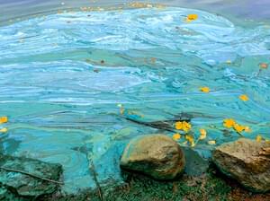 Beware of lakes, ponds and waterways discoloured by blue-green algae. This is actually a type of bacteria, which resembles algae when clumped together. Blue-green algae may appear as a greenish scum or foam, green flakes, or swirls of green or blue colour in the water.