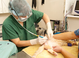 After you leave us your contact details and sign the consent form, your pet is admitted and given a pre-med - a course of drugs that means less general anaesthetic agent is needed, giving a much smoother induction and recovery, as well as making animals much easier to restrain for any intravenous injections. Blood tests may be recommended for older pets.